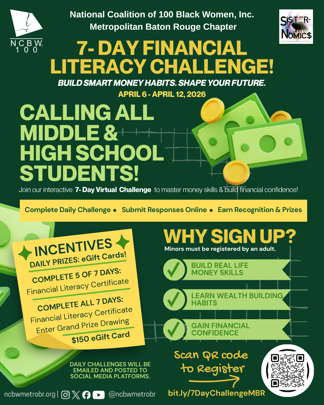 The National Coalition of 100 Black Women, Inc.’(NCBW) economic programs focus on financial literacy, family wealth building, and entrepreneurship. NCBW’s empowerment programs include comprehensive workshops and seminars that promote economic self-sufficiency.