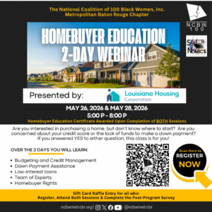 This website is the sole property and responsibility of the National Coalition of 100 Black Women, Inc. - Metropolitan Baton Rouge Chapter © 2025. All Rights Reserved. Designed by SRJWebsites.com.